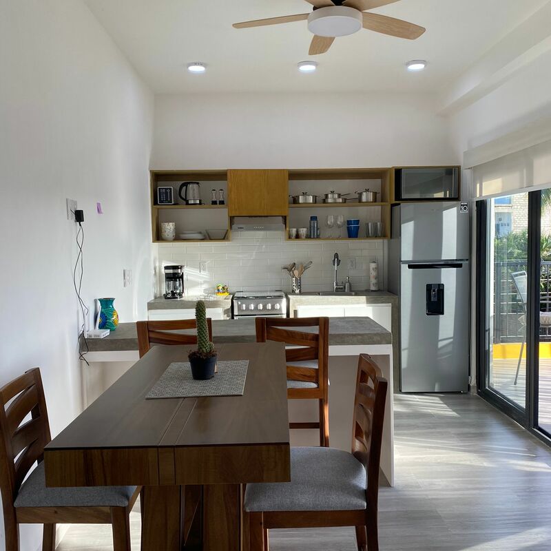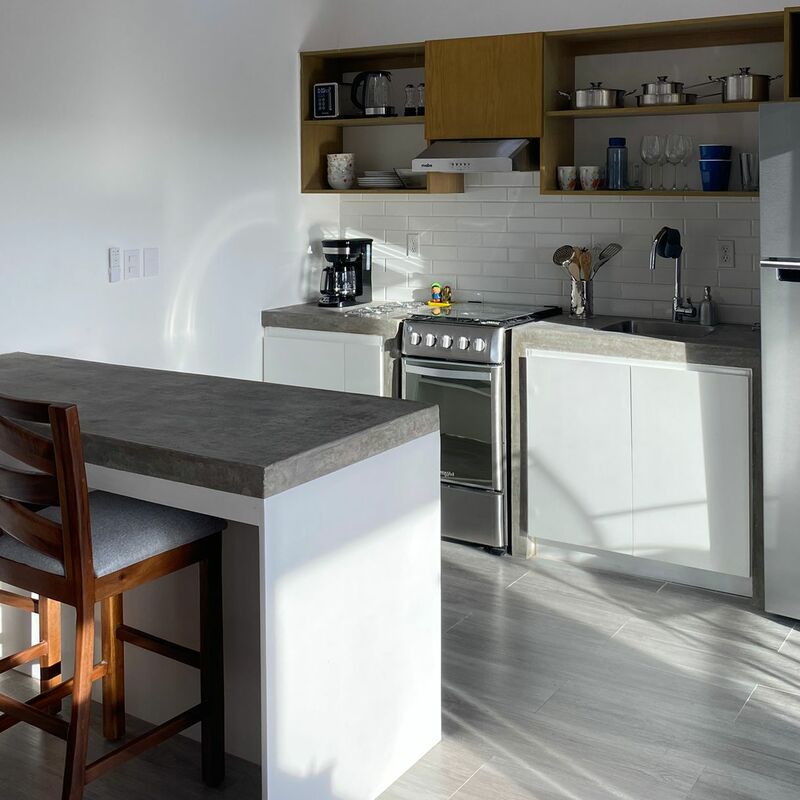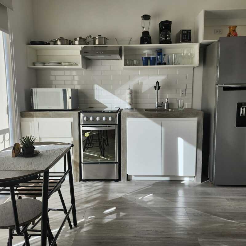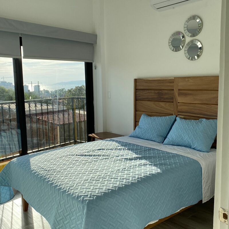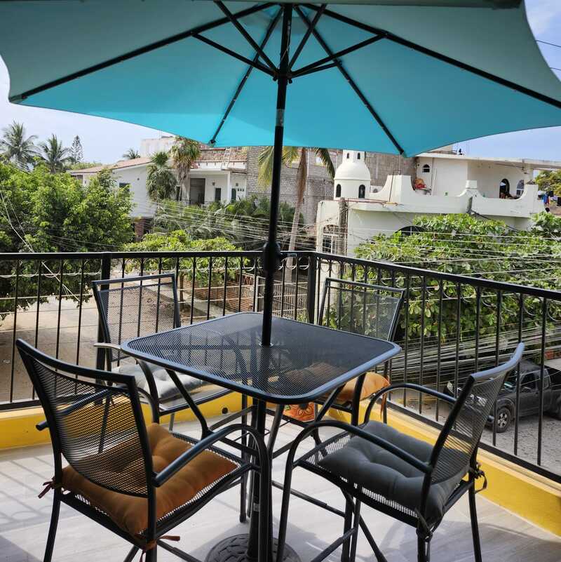 Enjoy our one-bedroom apartment that includes a fully stocked kitchen along with a living and dinning area. The unit also includes a separate bedroom and bathroom. The spacious patio on the balcony allows for a magnificent partial ocean view and a taste of the local Mexican residential living.